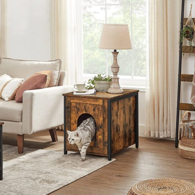 Cat Litter Box Furniture, Hidden Litter Box Enclosure Cabinet, Rustic Brown and Black