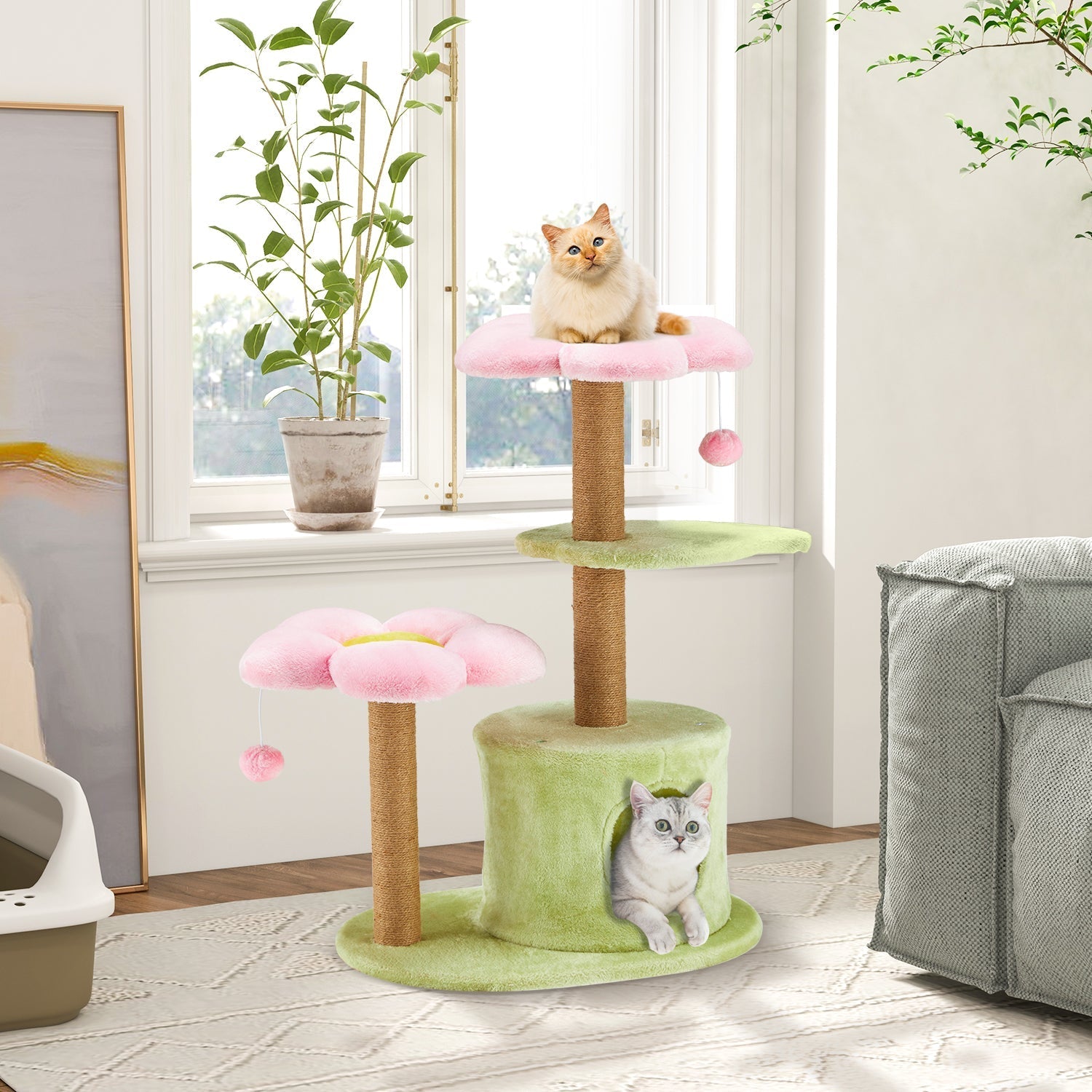 - 【FLOWER DESIGN】The flower-shape cat tree is more lovely than traditional cat trees. The comfortable and soft flower top perch can make your cat rest like a fairy in the flower bushes.