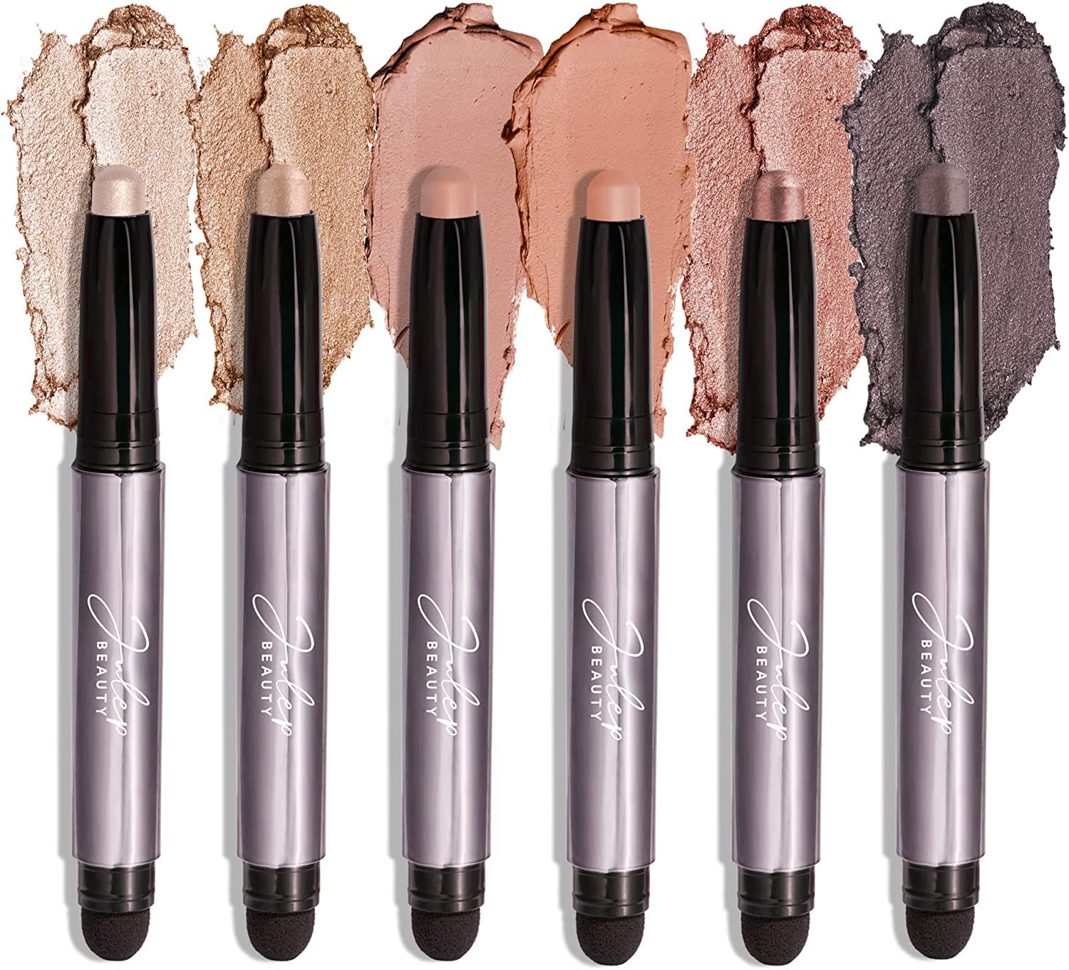- HIGHLY PIGMENTED EYESHADOW 6PC PEARL SHIMMER, PUTTY MATTE, SAND SHIMMER, CLAY MATTE, ROSE SHIMMER and SMOKY AMETHYST: This set of six eyeshadows delivers on smoky drama and nourishment, thanks to the hydrating formula with Vitamin C & E.