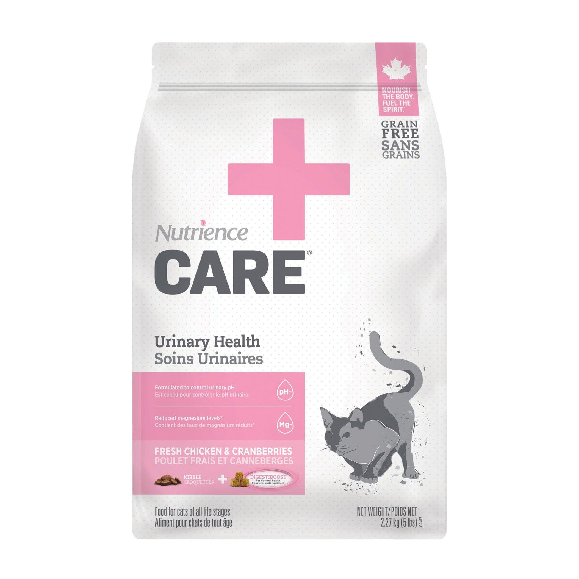Nutrience Care® Urinary Health is a complete and balanced diet precisely formulated to help maintain a healthy urinary tract. A combination of fresh chicken, cranberries, plant-based proteins and meticulously controlled mineral levels are used to create a diet designed to control urinary pH in order to create an unfavourable environment for crystal formation. In addition to caring for your cat’s special needs, we’ve taken great strides to ensure their care is delivered in the form of a high-quality, gluten-free diet, made of healthy, wholesome ingredients.