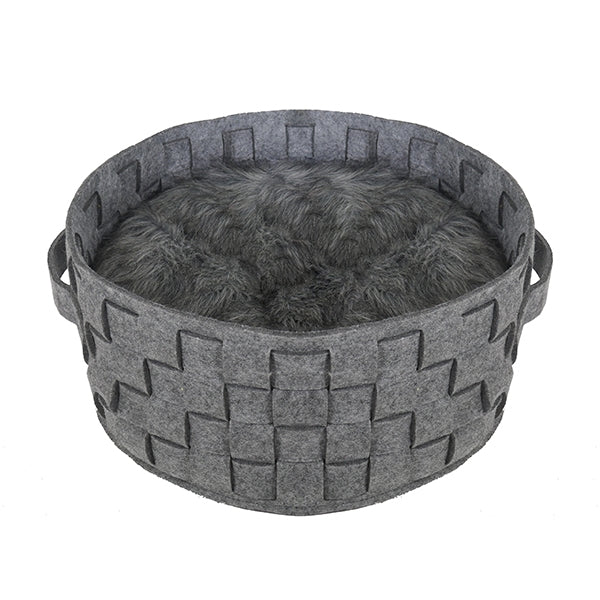The grey felt round shaped basket has been designed with the modern house in mind.