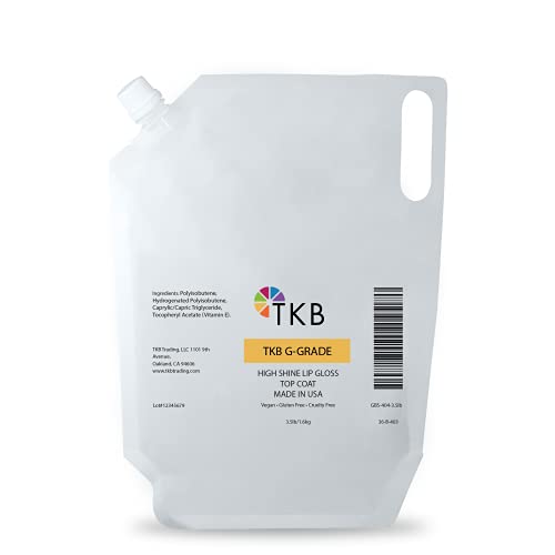 Details: TKB High Shine Lip Gloss Top Coat (G-Grade) TKB stands for Truth, Knowledge, and Beauty! TKB has been helping people make their own cosmetics and personal care products for over 20 years! TKB High Shine Lip Gloss Top Coat (G-Grade) is an extra shiny, bright, clear lip gloss base for use in lip gloss and other cosmetics. This formula is exclusively distributed by TKB Trading, LLC. Shiny, long lasting, moisturizing, and ultra-comfortable, this base is essential for your cosmetic creations! Perfect for ready made Lip Gloss and for use in various oil, gel and lotion bases. Does not need the addition of extra oils. Mixes easily with TKB Flavoring Oils and colors from the TKB Mosaic Lip Liquid Set, sold separately on Amazon.
